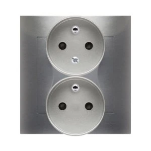 Simon 54 Gniazdo podwójne z/u z funkcją niezmienności faz z przesłonami 16A 250V srebrny mat DGZ2TZ/43