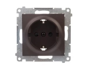 Simon 54 Gniazdo pojedyncze SCHUKO z/u 16A IP20 z przesłoną torów, szybkozłącza, brąz mat DGSz1CZ.01/46