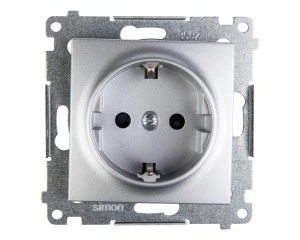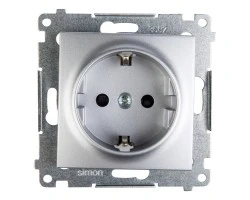 Simon 54 Gniazdo pojedyncze SCHUKO z/u 16A IP20 z przesłoną torów, szybkozłącza, srebrny mat DGSz1CZ.01/43