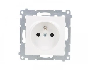 Simon 54 Gniazdo pojedyncze z/u w standardzie posiada przesłony styków. Dobra jakość wykonania, korzystny stosunek ceny do jakości. polecam szczególnie do instalacji domowych.