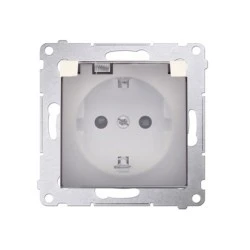 Simon 54 Gniazdo pojedyncze SCHUKO 16A 250V IP44 z przesłonami i klapką srebny mat DGSZ1BZ.01/43A