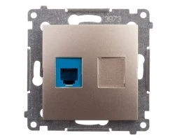 Gniazdo stworzono z tworzywa termoplastycznego wzmocnionego dodatkami uszlachetniającymi oraz antystatycznymi, które zapewniają trwały kolor oraz nieosadzanie się kurzu na nim. To, co jest charakterystyczne dla produktu, to jego niepowtarzalny złoty kolor z matowym wykończeniem powierzchni. Takie rozwiązanie kolorystyczne sprawdzi się w eleganckich aranżacjach domów i biur, gdzie złoty kolor podkreśli lub zestawi się z pozostałymi elementami pomieszczenia.