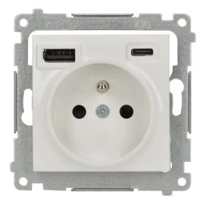 Simon 54 Gniazdo wtyczkowe z zintegrowaną ładowarką USB C+A (moduł), 2.1 A, 5 V DC, 230 V biały DGZ1ZUSB2CA.01/11