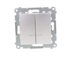 Simon 54 Łącznik bryzgoszczelny świecznikowy IP44 z podświetleniem, szybkozłącza, srebrny mat DW5BL.01/43