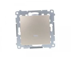 Produkt posiada podświetlenie LED, dzięki czemu ułatwia to identyfikację. Dodatkowo, ta funkcja umożliwia nam szybsze zlokalizowanie łącznika na ścianie. Produkt jest dostępny w eleganckim złotym kolorze, a jego powierzchnia jest nieobrabiana i matowa. Łącznik znajdzie swoje zastosowanie w pomieszczeniach mieszkalnych, jak i w biurach czy urzędach.