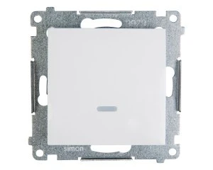 Simon 54 Premium, to linia produktów, z której pochodzi łącznik 1 - biegunowy. Składa się on z elementu podstawowego z centralną plakietką osłonową. Działa przy użyciu przycisku wahadłowego, który ma 1 dźwignię. Montując podtynkowo łącznik, potrzebujemy zaledwie śruby i pazurków.