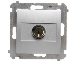 Simon 54 Łącznik żaluzjowy na kluczyk 1-bieg. 3 pozycyjny I-0-II 2 styki N/O 5A srebrny mat DWZK.01/43