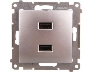 Simon 54 Ładowarka 2xUSB 2.1A 5V/DC srebrny mat DC2USB.01/43