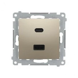 Simon 54 Ładowarka USB C+A (moduł), 30 W, 230V złoty mat DEC2CAQ.01/44
