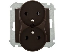 Simon 54 Nature Gniazdo podwójne z/u z przesłonami brąz mat DGZ2MZN.01/46