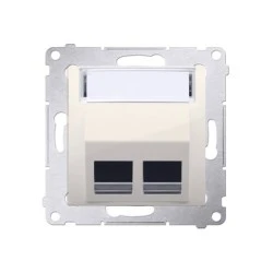 Simon 54 Pokrywa gniazd teleinformatycznych na Keystone skośna podwójna z polem opisowym (moduł). krem DKP2S.01/41