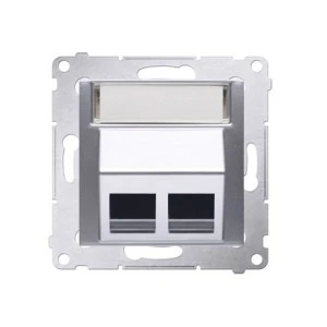 Simon 54 Pokrywa gniazd teleinformatycznych na Keystone skośna podwójna z polem opisowym (moduł). srebrny mat DKP2S.01/43