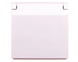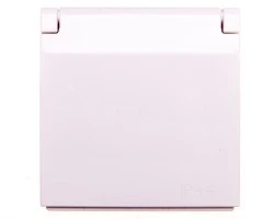 Simon 54 Gniazdo pojedyncze z/u 16A IP44 z przesłoną torów z klapką białe DGZ1BUZ.01/11