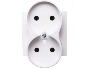 Simon 54 Gniazdo podwójne z/u 16A IP20 z przesłoną torów białe DGZ2MZ.01/11