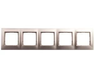 Ramka uniwersalna 5-krotna marki Kontakt-Simon to produkt przeznaczony do montażu poziomego. Ramka została wykonana z tworzywa sztucznego. Jest wytrzymała, odporna na uszkodzenia, doskonale sprawdza się zarówno w budynkach mieszkalnych, jak i użyteczności publicznej. Model w kolorze złotym dopasowuje się do każdego rodzaju wnętrza. Idealnie sprawdzi się w przypadku minimalistycznych aranżacji, które ociepli, stając się nie tylko funkcjonalnym elementem, ale także dekoracją. Ramka posiada stopień ochrony IP20, wyróżnia ją klasyczna, matowa powierzchnia. Produkt ten świetnie sprawdza się w przypadku systemów oświetleniowych, których układ sterowania skoncentrowany jest w jednym miejscu. Każdy z pięciu umieszczonych w ramce klawiszy może obsługiwać inne źródło światła.