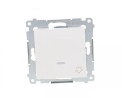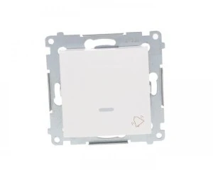 Produkt posiada jeden styk zwierny NO i dźwignię, która napędza mechanizm znajdujący się w środku urządzenia. Przycisk pojedynczy został wykonany z wysokiej klasy tworzywa termpolastycznego, które jest odporne na ścieranie i zarysowania, które mogłyby się pojawić w trakcie użytkowania. Montuje się go podtynkowo, przy wsparciu pazurków i śruby. Produkt jest dedykowany na napięcie 250 V i prąd łączeniowy równy 10 A. Dodatkowo przycisk dzwonkowy posiada stopień ochrony IP20, dlatego powinien być montowany wewnątrz pomieszczeń np.: na klatkach schodowych. Powierzchnia produktu jest nieobrabiana i jest w białym, błyszczącym kolorze. Przycisk posiada podświetlenie, dzięki czemu jest widoczny i bez trudu można go odnaleźć na ścianie. Produkt nie ma miejsca na oznaczenie.
