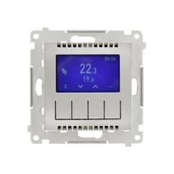 Simon 54 Regulator temperatury z wyświetlaczem (czujnik wewnętrzny lub sonda) srebrny mat, metalizowany DETD1A.01/43