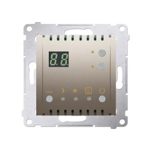 Simon 54 Regulator temperatury z wyświetlaczem z czujnikiem wewnętrznym 16(2) A 230V złoty mat DTRNW.01/44