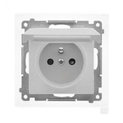 Simon 55 Gniazdo wtyczkowe pojedyncze z uziemieniem i przesłonami (moduł) 16 A, 250 V~, szybkozłącza Biały mat TGZ1CZ.01/111