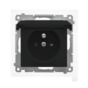Simon 55 Gniazdo wtyczkowe pojedyncze z uziemieniem i przesłonami (moduł) 16 A, 250 V~, szybkozłącza Czarny mat TGZ1CZ.01/149