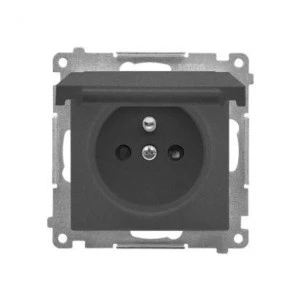 Simon 55 Gniazdo wtyczkowe pojedyncze z uziemieniem i przesłonami (moduł) 16 A, 250 V~, szybkozłącza Czarny mat TGZ1CZ.01/149