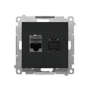 Simon 55 Gniazdo komputerowe podwójne RJ45 kategoria 6, z przesłoną przeciwkurzową (moduł) Czarny mat T62.01/149