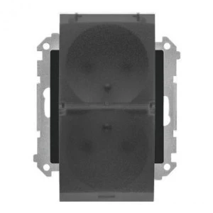 Simon 55 Gniazdo podwójne do wersji IP44 z uszczelką (moduł), szybkozłącza. Klapka transparentna Grafitowy mat TGZ2BMCZ.01/116A