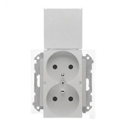 Simon 55 Gniazdo podwójne do wersji IP44 z uszczelką (moduł), szybkozłącza. Klapka w kolorze Aluminium mat TGZ2BMCZ.01/143