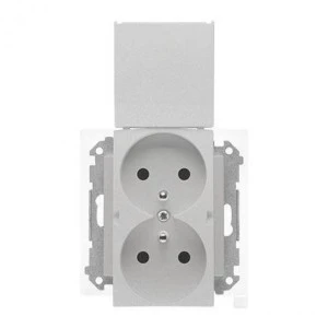 KIER Gniazdo podwójne z/u z przesłonami satyna light GP-2WZP/45