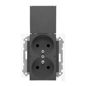 Simon 55 Gniazdo podwójne do wersji IP44 z uszczelką (moduł), szybkozłącza. Klapka w kolorze Grafitowy mat TGZ2BMCZ.01/116
