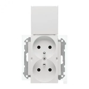 Simon 55 Gniazdo wtyczkowe podwójne do wersji IP44 z uszczelką (moduł) szybkozłącza. Klapka w kolorze Biały mat TGZ2BMCZ.01/111