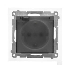 Simon 55 Gniazdo Schuko IP44 z przesłonami z uszczelką(moduł), szybkozłącza. Klapka transparent. Grafitowy mat TGSZ1BCZ.01/116A