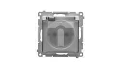 Simon 55 Gniazdo Schuko IP44 z przesłonami z uszczelką(moduł), szybkozłącza. Klapka transparent Jasnoszary mat TGSZ1BCZ.01/114A