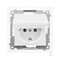 Simon 55 Gniazdo Schuko IP44 z przesłonami z uszczelką ramki (moduł), szybkozłącza. Klapka w kolorze Biały mat TGSZ1BCZ.01/111