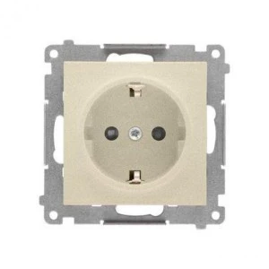 SZAFIR Gniazdo pojedyncze z uziemieniem schuko z przesłonami torów prądowych kaszmirowy beż GP-1ZSP/m/83