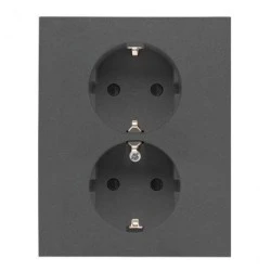 LOGI Gniazdo podwójne 2x2P+Z Schuko kompletne śrubowe 16A 250V Grafit 25272