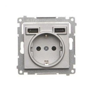 Simon 55 Gniazdo schuko ze zintegrowaną ładowarką 2xUSB A (moduł) Aluminium mat TGSZ1ZUSB2AA.01/143