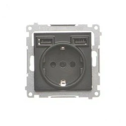 Simon 55 Gniazdo schuko ze zintegrowaną ładowarką 2xUSB A (moduł) Grafitowy mat TGSZ1ZUSB2AA.01/116