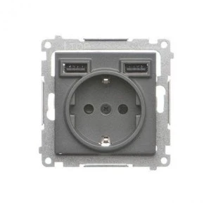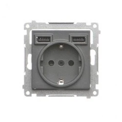 Simon 55 Gniazdo schuko ze zintegrowaną ładowarką 2xUSB A (moduł) Grafitowy mat TGSZ1ZUSB2AA.01/116