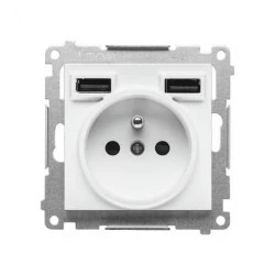 Simon 55 Gniazdo wtyczkowe ze zintegrowaną ładowarką 2xUSB A (moduł), 2.1 A, 5 V DC, 230 V Biały mat TGZ1ZUSB2AA.01/111