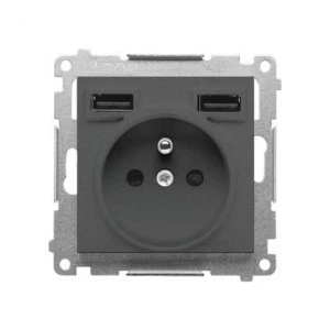Simon 55 Gniazdo wtyczkowe ze zintegrowaną ładowarką 2xUSB A (moduł), 2.1 A, 5 V DC, 230 V Grafitowy mat TGZ1ZUSB2AA.01/116