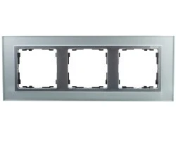 Simon 82 Ramka potrójna pozioma szklana srebro/ ramka pośrednia aluminium mat 82937‑62