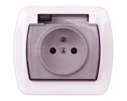 AKCENT Gniazdo bryzgoszczelne z/u IP44 klapka przezroczysta białe GPH-1AZ/00/d