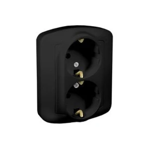 Simon Akord Gniazdo wtyczkowe podwójne z uziemieniem typu Schuko, 16A, 250V, zaciski śrubowe czarny AGSZ2/49