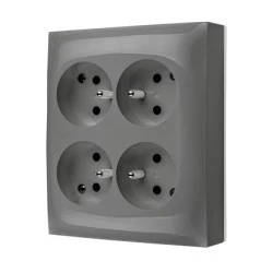 Simon Aquaclick Gniazdo IP20, 4-krotne z uziem., szybkozłącza, szary ACGZN4C/16