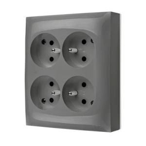 Simon Aquaclick Gniazdo IP20, Schuko, 4-krotne, szybkozłącza, szary ACGSZN4C/16