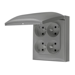 Simon Aquaclick Gniazdo IP44, 4‑krotne z uziem., szybkozłącza, klapka w kolorze, szary ACGZ4C/16