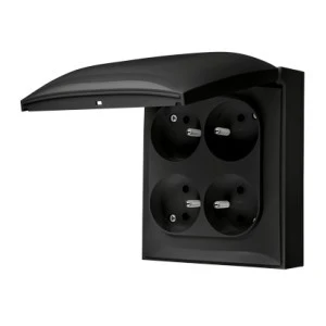 Simon Aquaclick Gniazdo IP44, 4-krotne z uziem., klapka w kolorze czarny ACGZ4/49