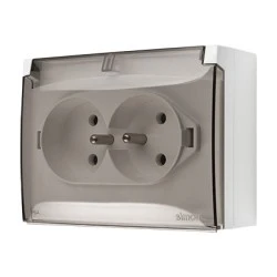 Gniazdo wtyczkowe podwójne kompaktowe z uziemieniem w wersji IP44