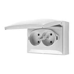Gniazdo wtyczkowe podwójne kompaktowe z uziemieniem w wersji IP44 z przesłonami torów prądowych
